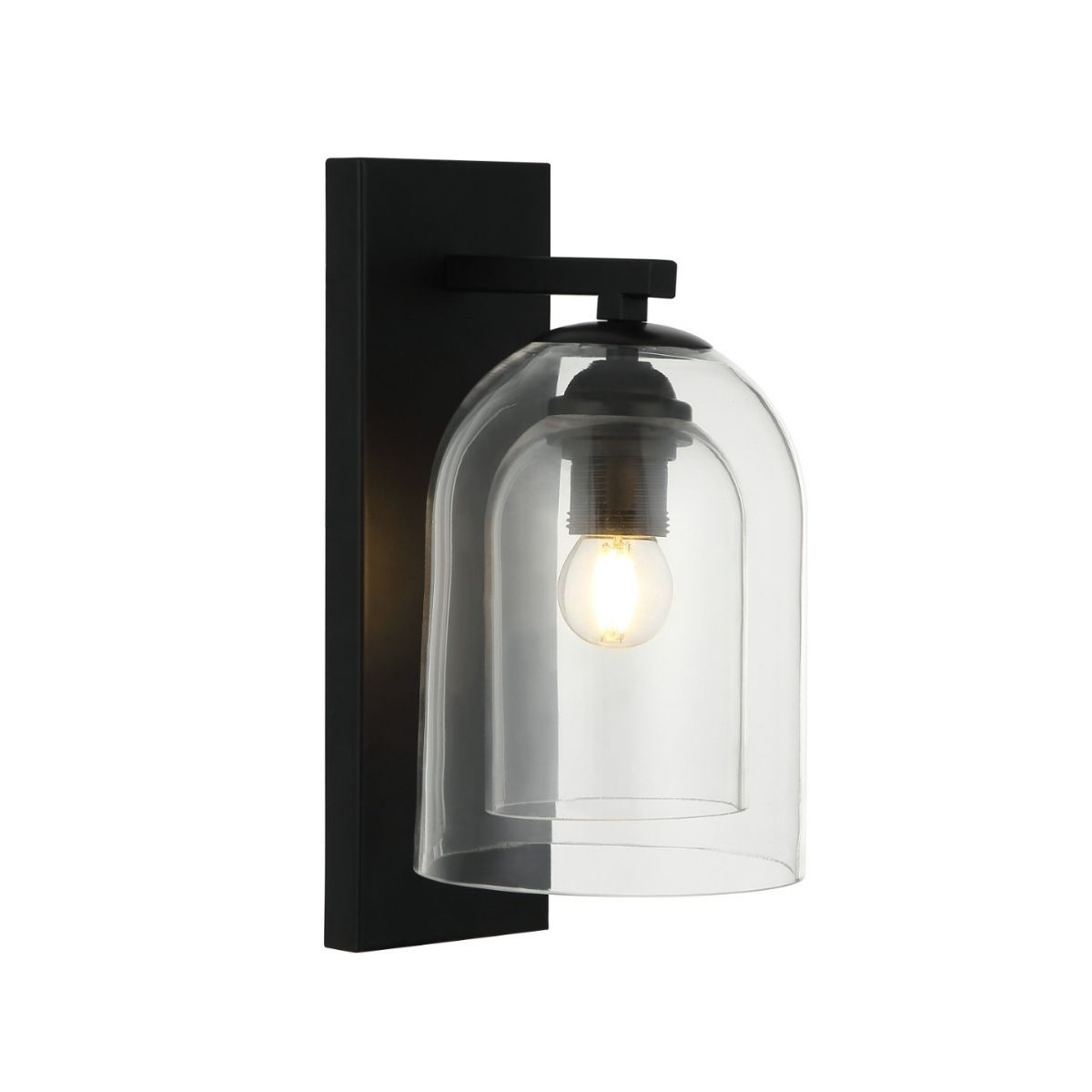 Materiał i kolorystyka: Klosz wykonany z podwójnego szkła o transparentnym wykończeniu. Podstawa wykonana z metalu w kolorze czarnym.