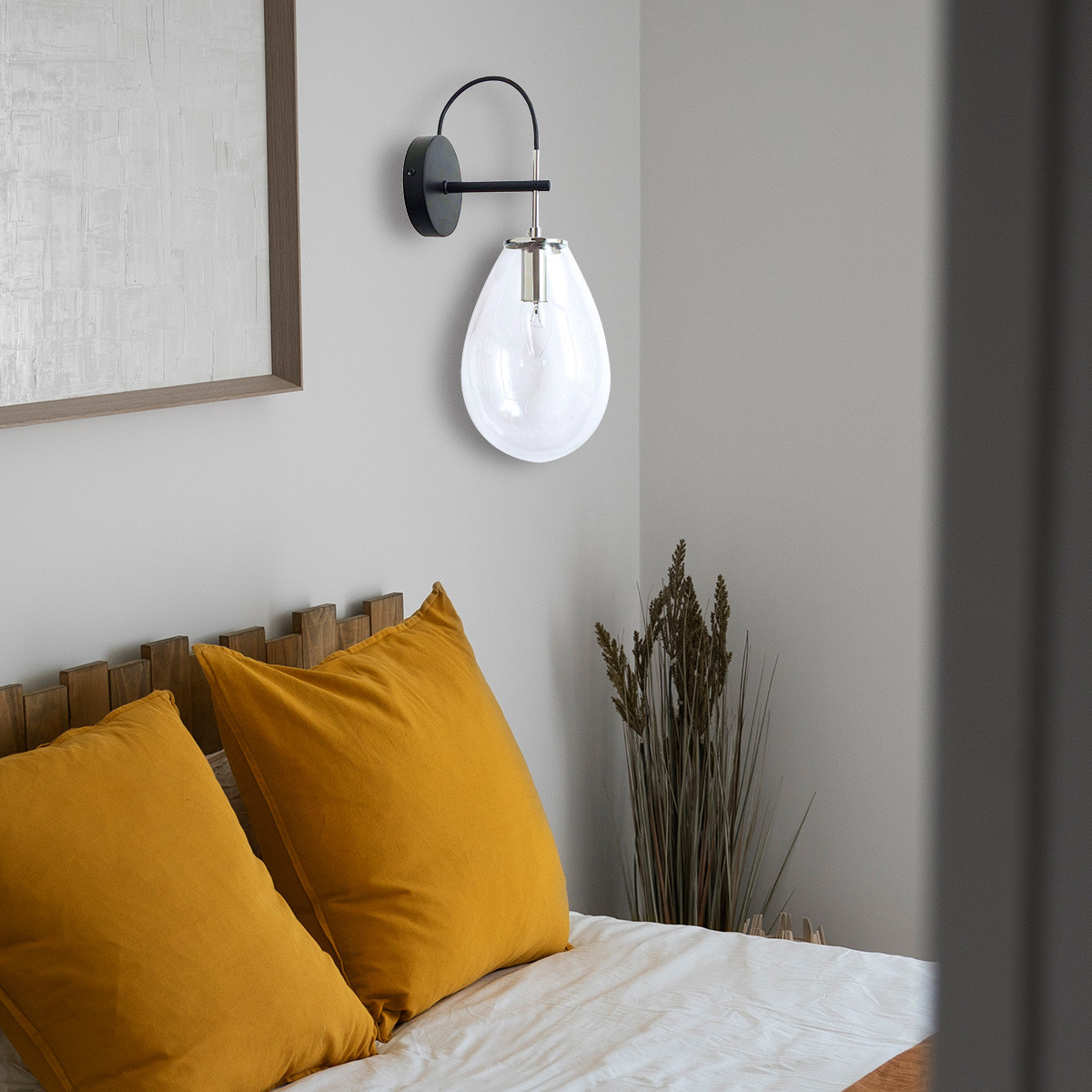 Materiał i kolorystyka: Kinkiet wykonany jest z metalu w czarnym i srebrnym kolorze oraz transparentnego szkła.