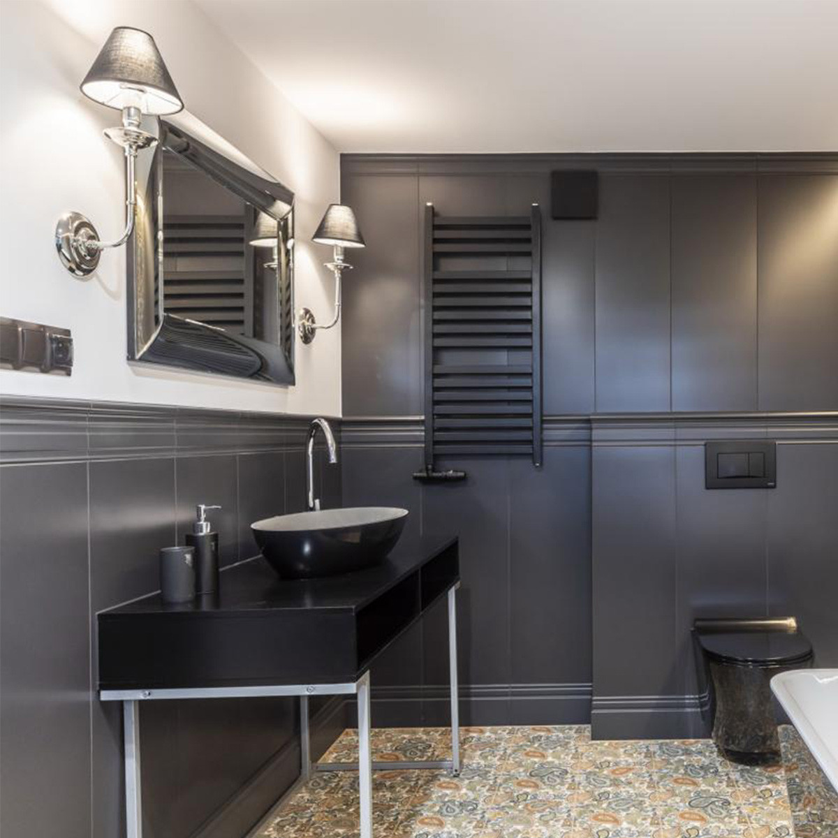 Zestawienie czarnego klosza ze srebrem stelarzem