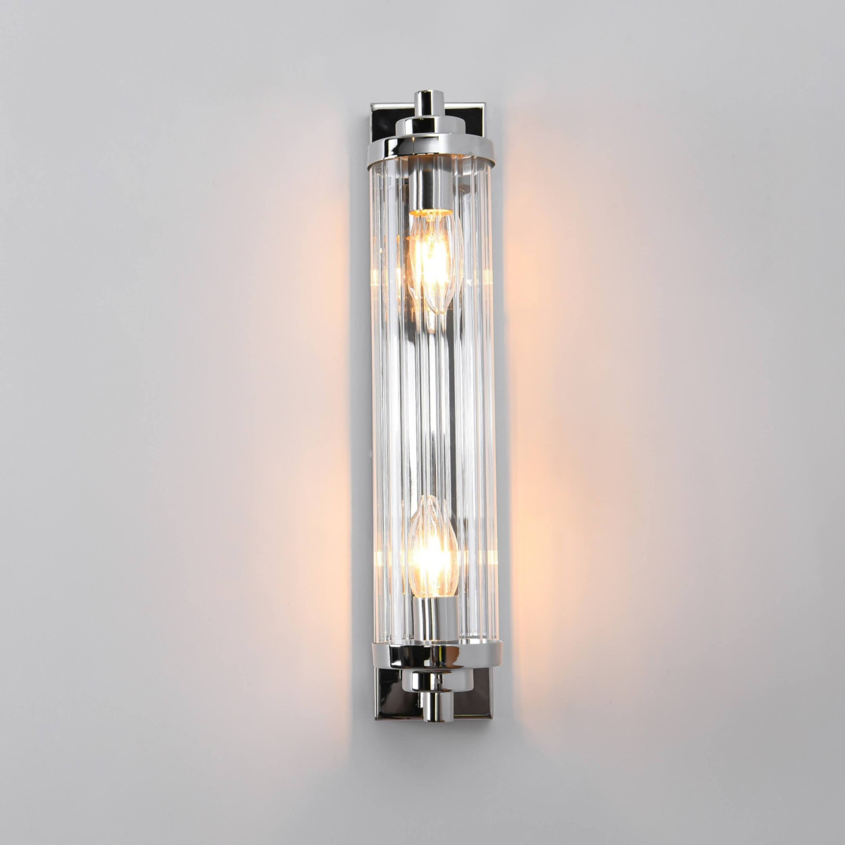 Kinkiet Lorenzo w kolorze chromu to elegancka i nowoczesna lampa ścienna, która doskonale sprawdzi się jako dodatkowe oświetlenie pomieszczeń, takich jak przedpokój, salon, gabinet. Wyrazisty design lampy przyciąga wzrok dzięki dominującemu wykorzystaniu szkła w konstrukcji klosza. Stelaż lampy wykonany jest z metalu w kolorze chromu, co dodaje jej nowoczesnego charakteru.