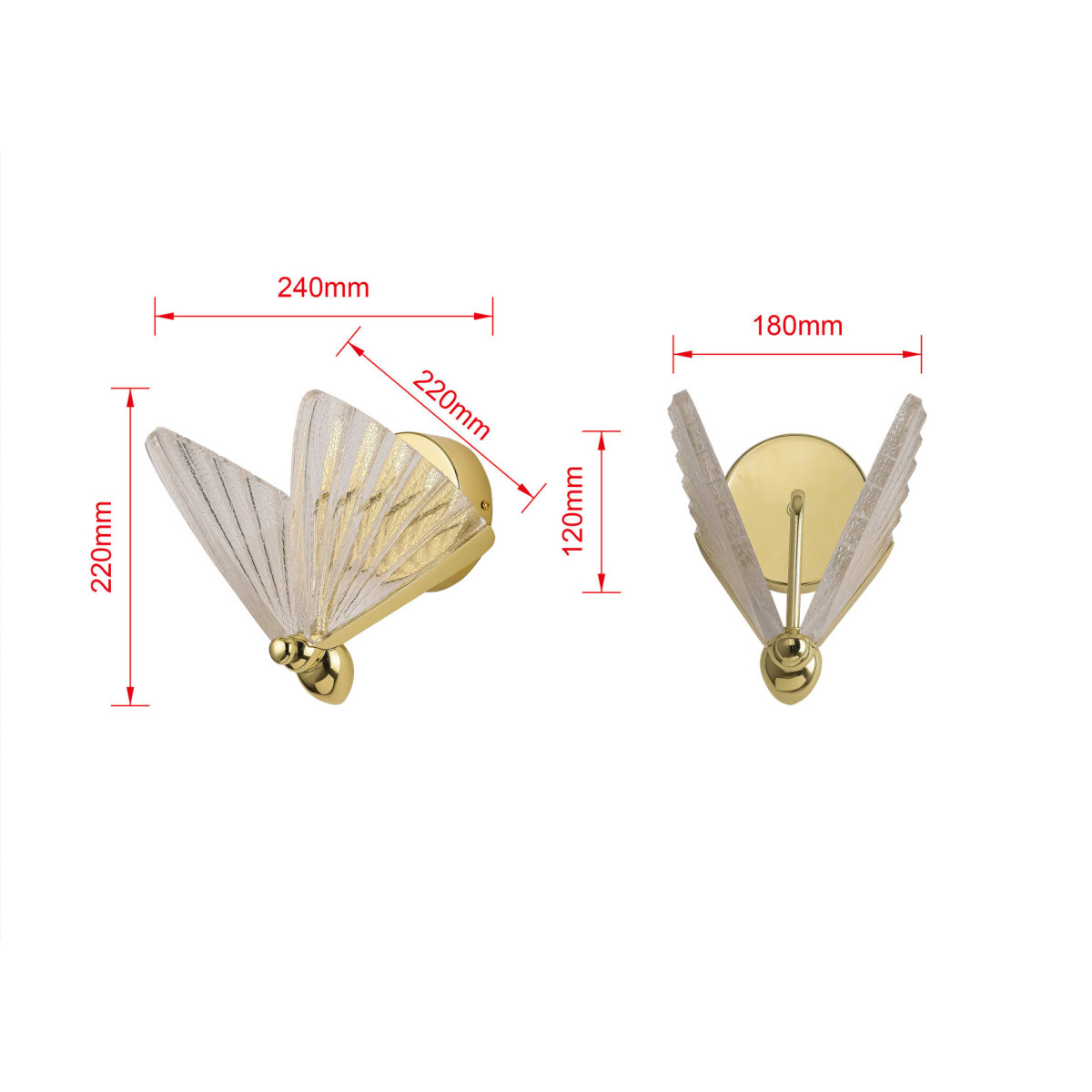 Kinkiet "Mariposa" wyposażony jest w zintegrowane oświetlenie LED, które oferuje możliwość ustawienia barwy światła na 3000K, 4000K lub 6000K, dostosowując je do preferencji użytkownika. Dwa źródła światła zapewniają optymalne oświetlenie. Główny kolor kinkietu to złoty, co dodaje wnętrzom wyjątkowego charakteru. Skrzydła motyla, będące jednocześnie źródłem światła, tworzą niezwykły efekt, który przyciąga wzrok i sprawia, że kinkiet "Mariposa" jest nie tylko oświetleniem, ale przede wszystkim dziełem sztuki.