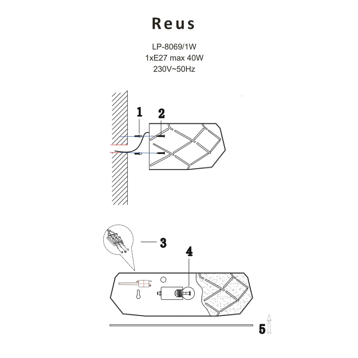 Źródło światła: Kinkiet posiada wejście na jedną żarówkę o typowym gwincie E27.