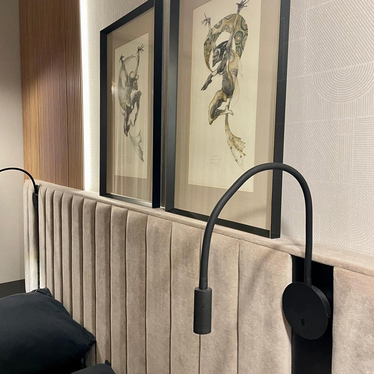 Rodzaj lampy: Kinkiet z kolekcji Senise z elastycznym ramieniem.