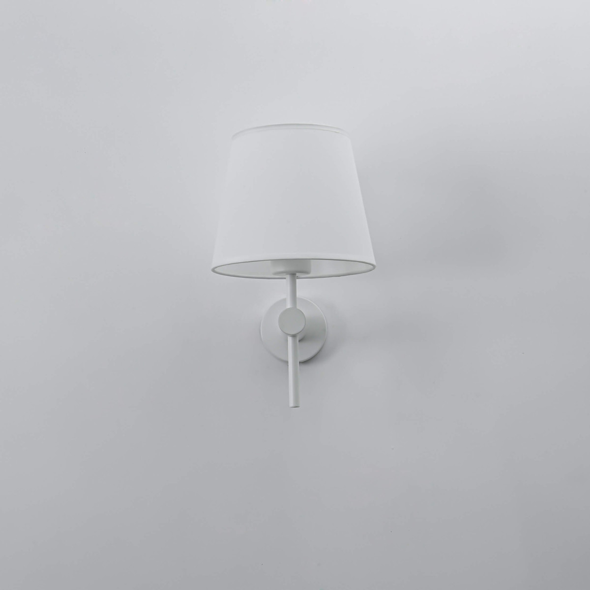 Materiał i kolor: Konstrukcja kinkietu wykonana jest z białego metalu, abażur natomiast z eleganckiej białej tkaniny.