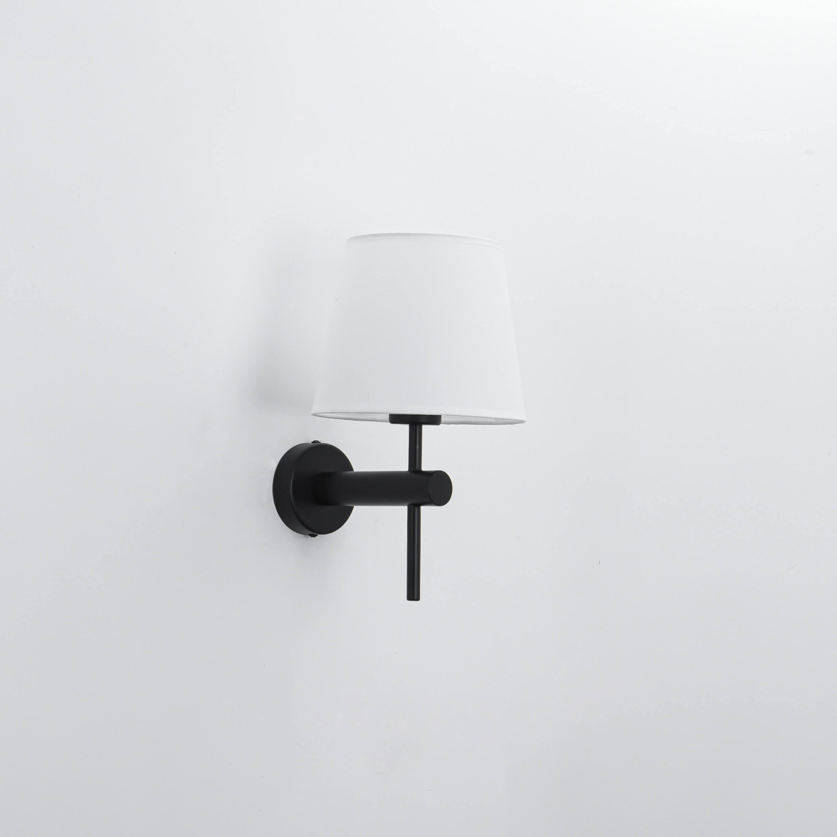 Materiał i kolor: Konstrukcja kinkietu wykonana jest z czarnego metalu, abażur natomiast z eleganckiej białej tkaniny.