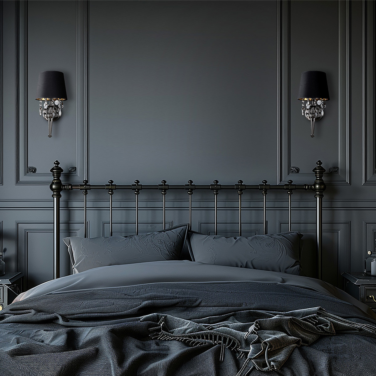 Kinkiet z czarnym abażurem i kryształkami