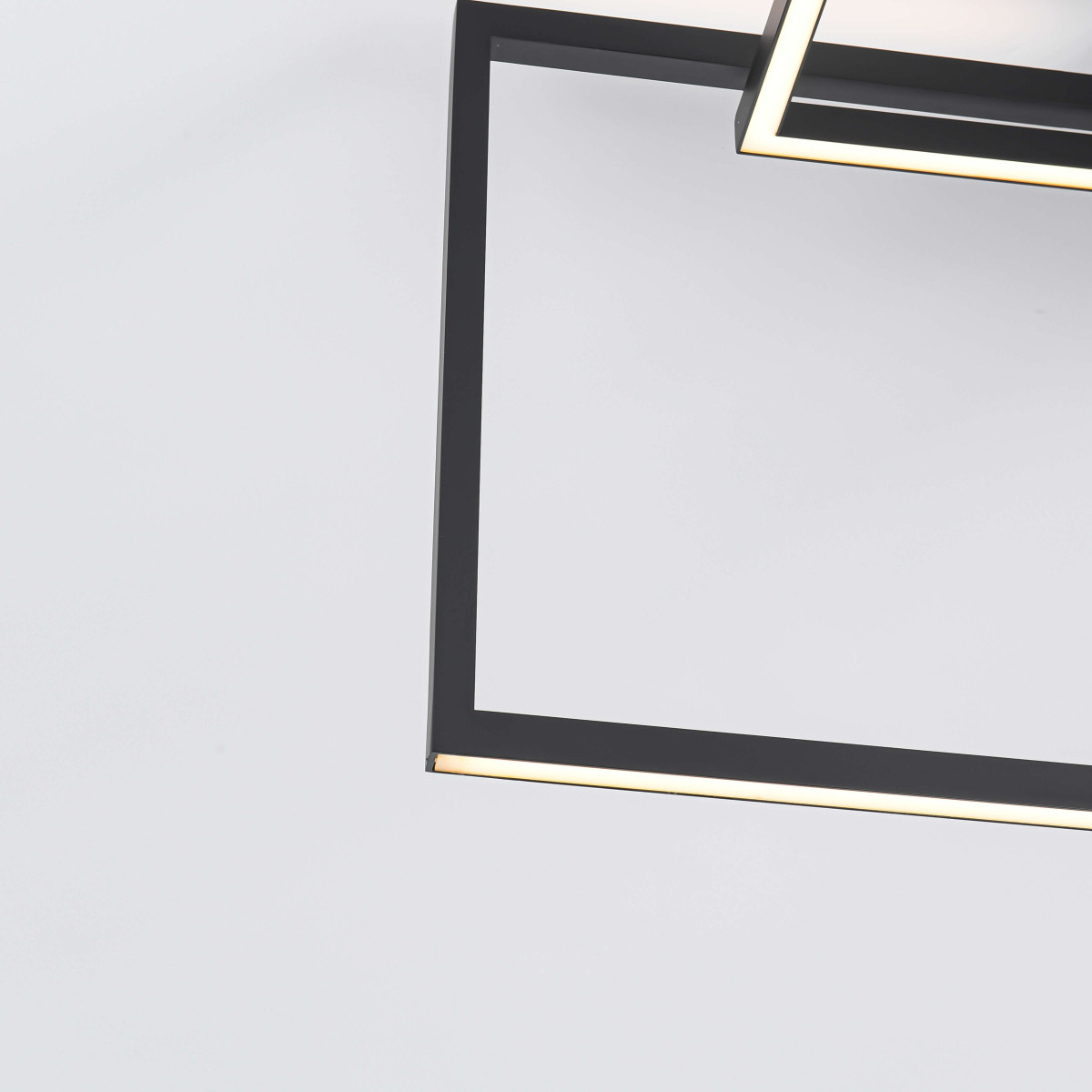 Co ciekawe, lampa sufitowa czarna nowoczesna Frame 3D jest plafonem, czyli jest przeznaczona do montażu bezpośrednio na suficie. Mimo to okazuje się na tyle przestrzenna, że zajmuje sporo miejsca i najlepiej prezentuje się w przestronnych wnętrzach o otwartym układzie.