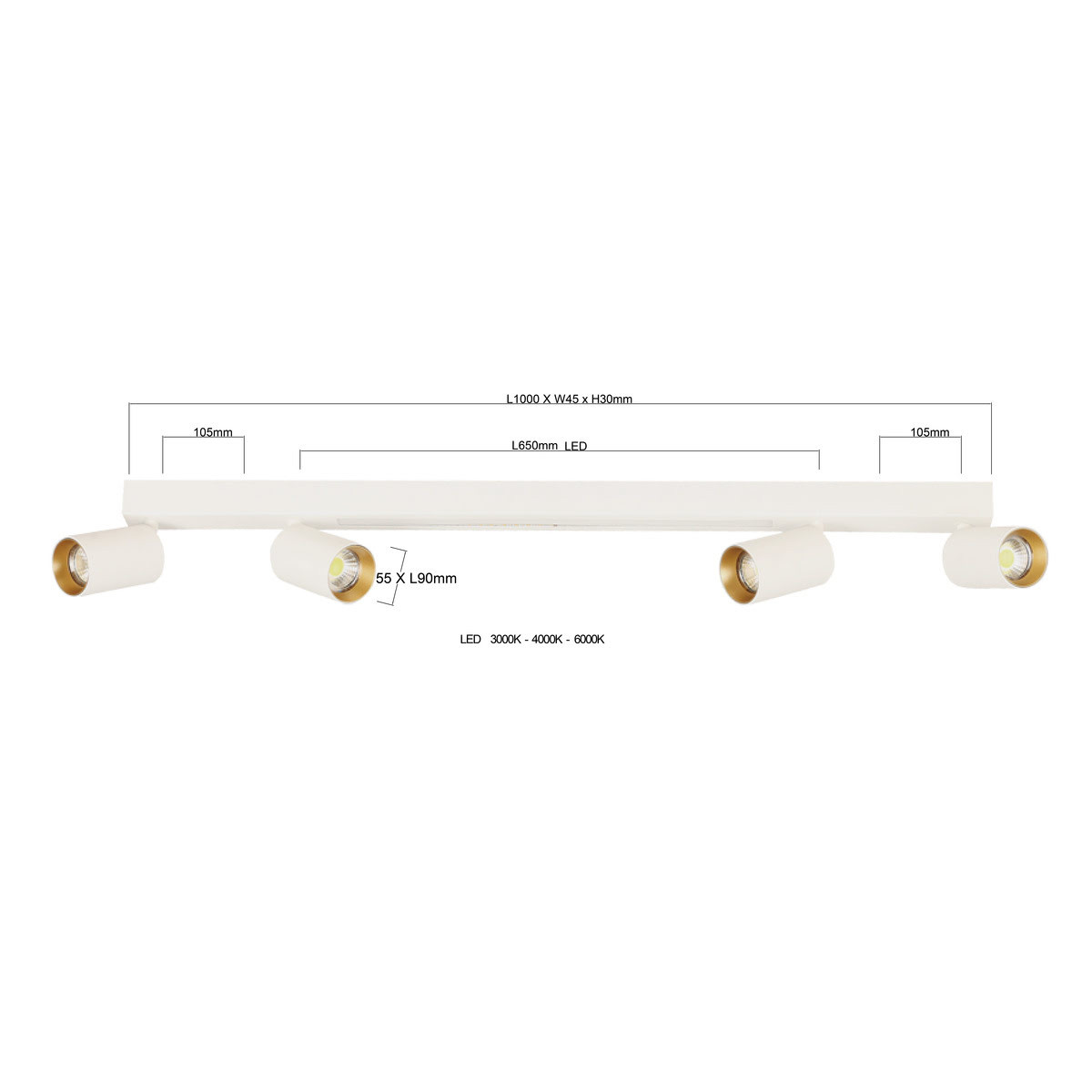 Lampa sufitowa Perugia to nowoczesny i stylowy element oświetleniowy, który doskonale sprawdzi się w różnych wnętrzach. Lampa posiada 4 eleganckie reflektorki, które nadają wnętrzu nowoczesnego charakteru. Jej konstrukcja została wykonana z trwałego, białego metalu, co zapewnia solidność i estetyczny wygląd. Lampę Perugia wyróżnia możliwość wyboru kolorystyki obręczy reflektorków. Do wyboru są białe, bądź złote obręcze (oba warianty w zestawie). Złote obręcze reflektorów sprawiją, że światło lampy jest ciepłe i przyjemne. Białe natomiast zapewniają nieskazitelną elegancję. Dodatkowym atutem tej lampy sufitowej jest wstawka akrylową z taśmą LED. Taśma LED jest energooszczędna i trwała, co sprawia, że lampa Perugia to nie tylko element dekoracyjny, ale także praktyczne i funkcjonalne oświetlenie do każdego pomieszczenia.