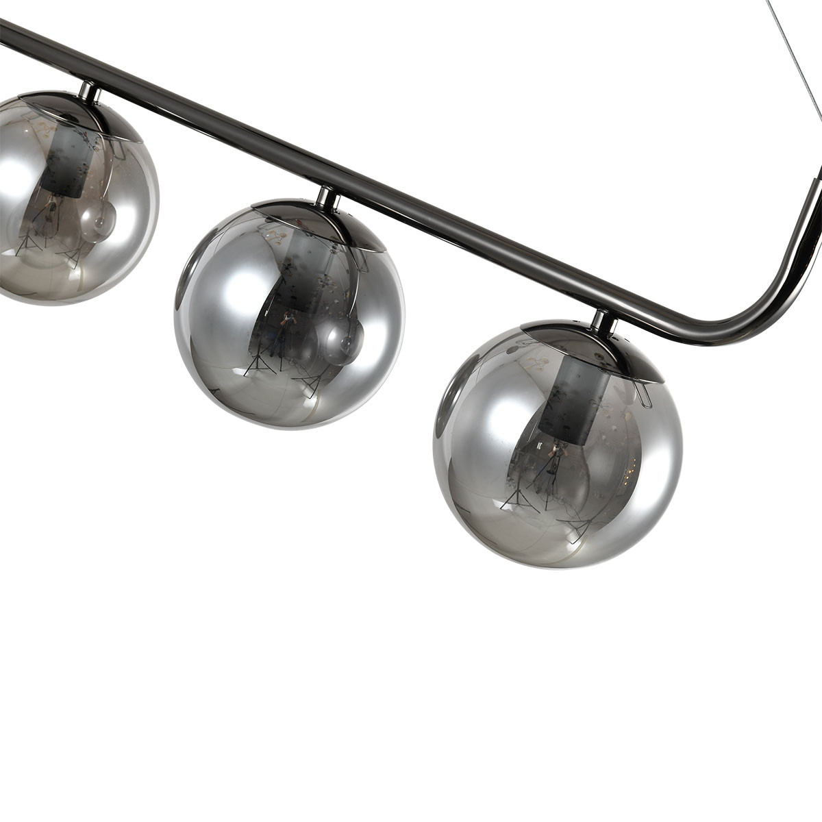 Materiał i kolorystyka: Lampa została wykonana z metalu w grafitowym kolorze oraz szklanych, przydymionych kloszy.