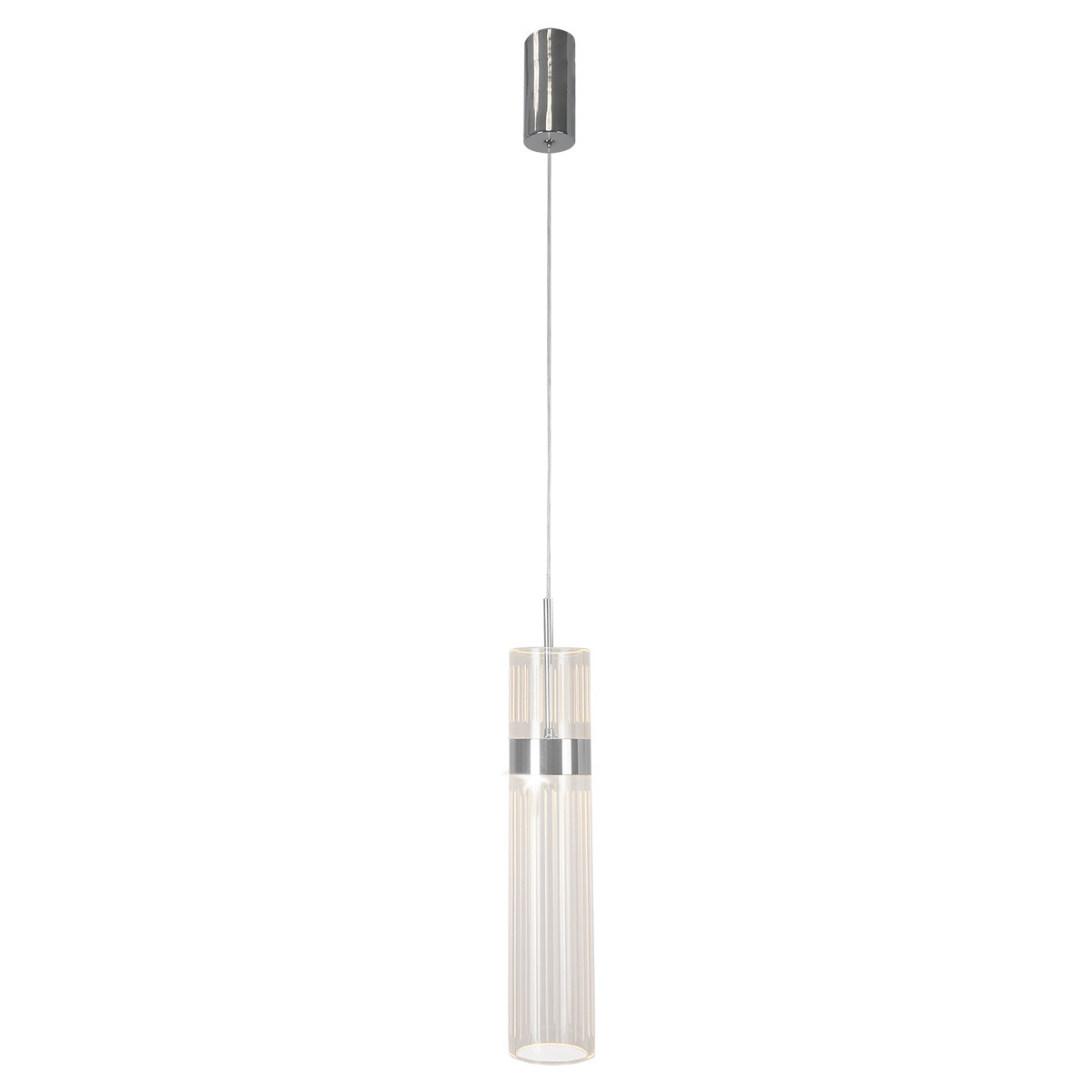 Lampa wisząca Ambiente to doskonała propozycja dla miłośników minimalistycznych i nowoczesnych wnętrz. Lampa posiada smukły klosz w kształcie tuby, wykonany z transparentnego akrylu, otoczony delikatną, metalową obręczą w kolorze chromu. Dzięki wbudowanemu światłu LED CCT istnieje możliwość wyboru preferowanej barwy światła (ciepłej, neutralnej lub zimnej), co pozwala dostosować oświetlenie do indywidualnych potrzeb. Światło przenika przez klosz w formie subtelnych, równomiernie rozmieszczonych kreseczek, tworząc nastrojowy efekt świetlny.