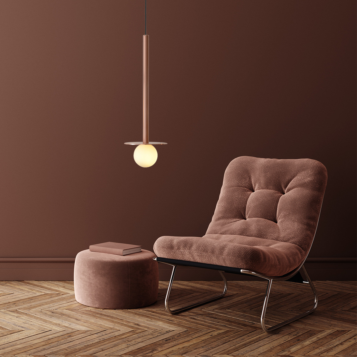 Czym jeszcze wyróżnia się ta lampa wisząca? Różowe złoto i mleczny odcień szkła dobrze harmonizują z dodatkami wykończeniowymi w większości modnych kolorów. Połączysz je w spójną kompozycję chociażby z butelkową zielenią, głębokim granatem, pudrowym różem, słonecznikowym żółtym, a także z ponadczasową klasyką – czernią i bielą.