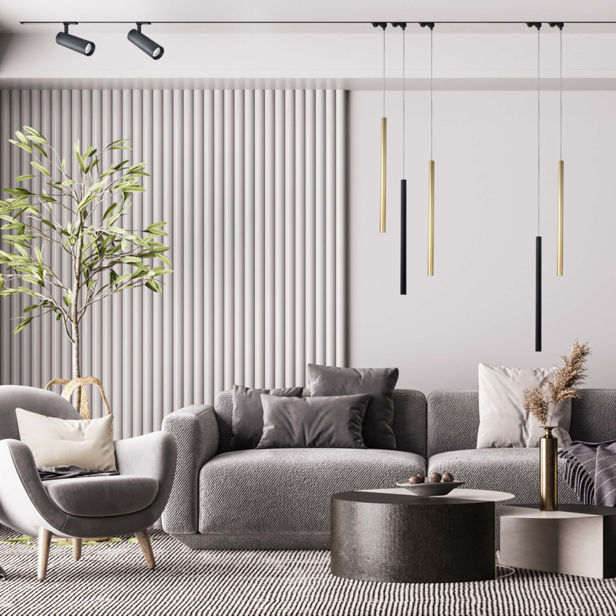 Lungo to złota lampa do szynoprzewodu, którą można śmiało utożsamiać z luksusem w codziennym wydaniu. Choć już sama kolorystyka ma w tym duży udział, nie można też nie wspomnieć o niezwykle smukłej formie, na którą składają się wąska tuba i cienka linka. Tak subtelne połączenie jednak wywiera również bardzo mocne wrażenie, jeśli występuje w duecie z systemem oświetlenia szynowego.
