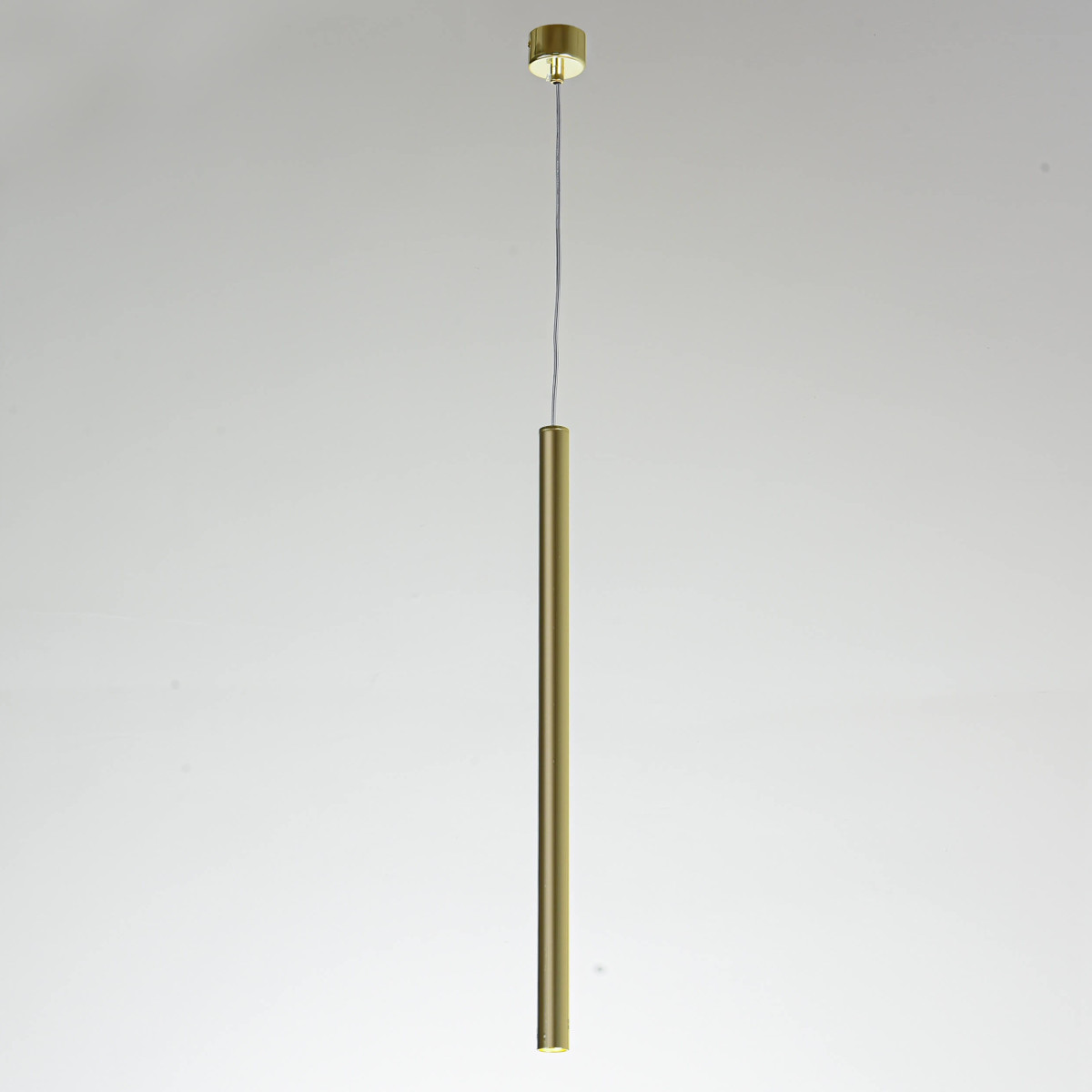 Lungo 1 to złota lampa wisząca w minimalistycznym stylu. Lampa lungo w złotym kolorze została wykonana z metalu. Lampa posiada nietypowy, minimalistyczny klosz w kształcie długiej, wąskiej tuby zakończonej miejscem na żarówkę o gwincie G9. Prosta forma lampy Lungo sprawia, że będzie się pięknie komponowała z wieloma aranżacjami od kalsycznych po nowoczesne.