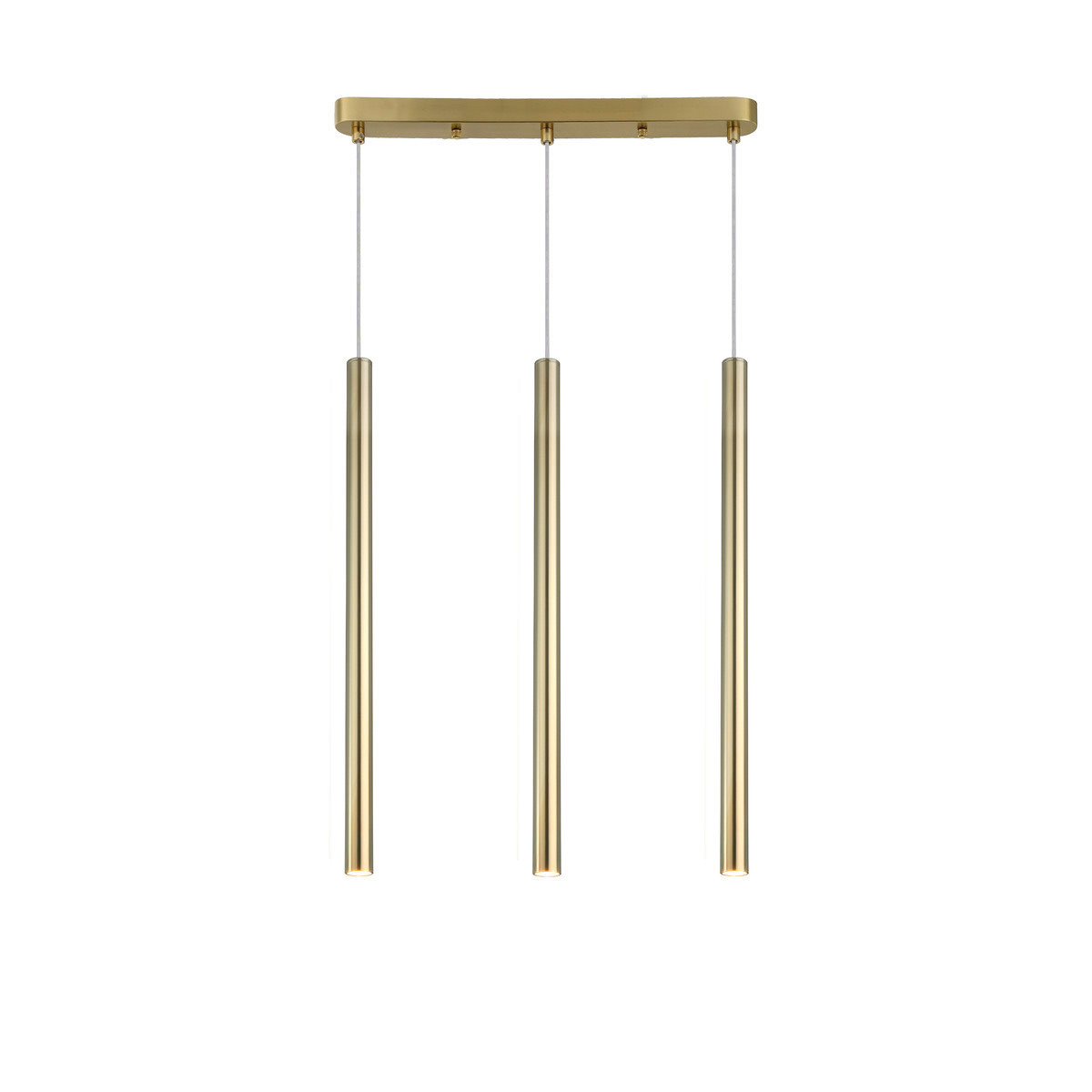 Lampa Lungo 3 to niebanalne połączenie prostej, niemalże industrialnej formy ze złotym kolorem. Klosze w kształcie długich i wąskich tub zostały zawieszone na przewodzie o długości 150 cm. Wszystko to sprawia, że lampa będzie stylowym uzupełnieniem wielu aranżacji. Sprawdzi się zarówno w domowym zaciszu, jak i w przestrzeniach hotelowych i biurowych.