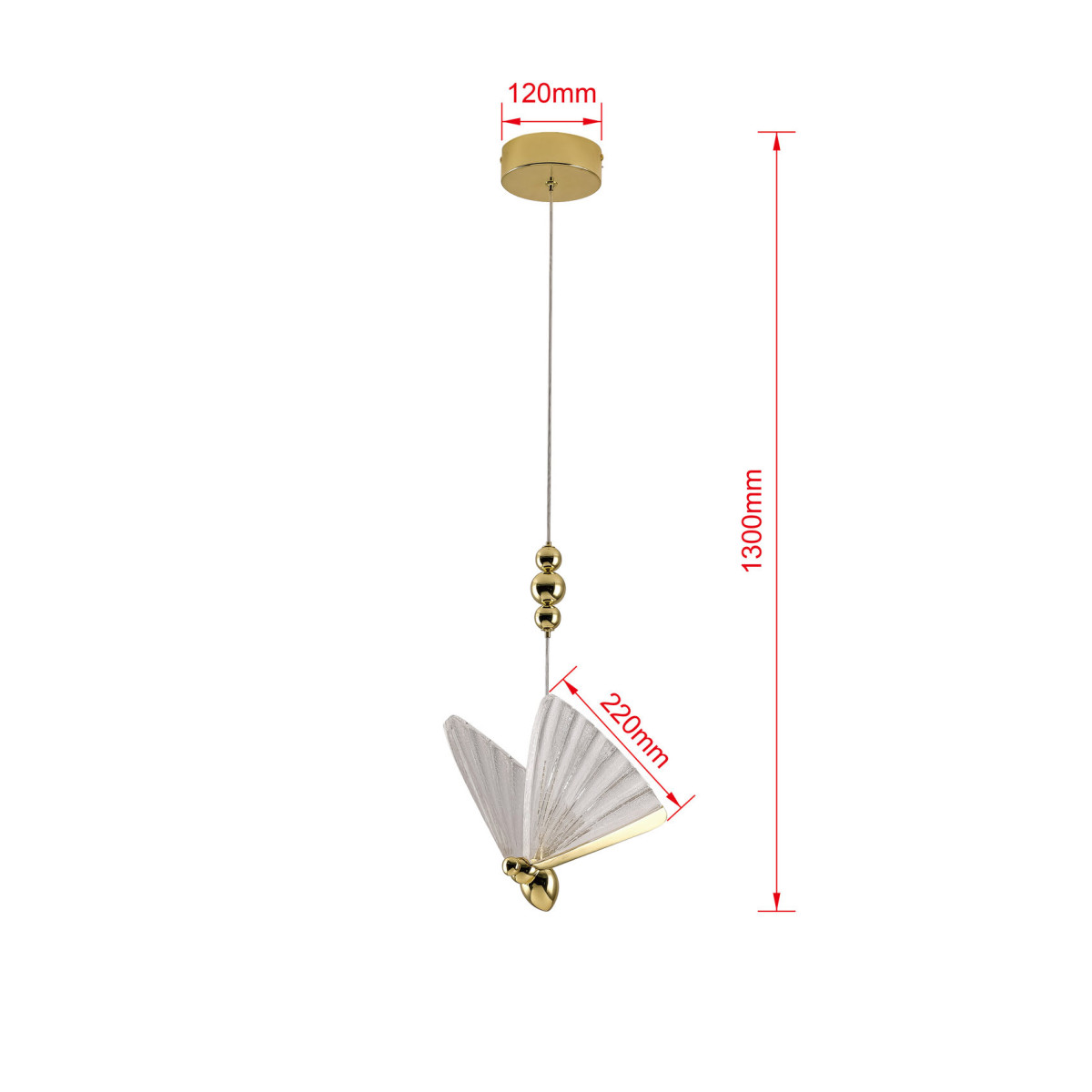 Lampy Mariposa posiadają piękne, niebanalne klosze w kształcie motyli. Światło LED umieszczone jest w motylich skrzydłach. Złote elmenty z metalu pięknie romansują ze świecącymi motylimi skrzydłami. Lampy Mariposa to niezastąpiony element oświetleniowy, który wprowadza niesamowitą atmosferę spokoju i harmonii.