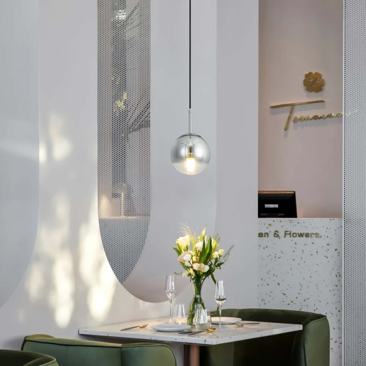 Pojedyncza lampa wisząca Palla to idealna propozycja do jadalni, salonu oraz kuchni nad wyspę kuchenną. Lampa posiada elegancki chromowany kolor i ponadczasowy kształt kuli. Lampa Palla wpisze się zarówno w nowoczesne, jak i klasyczne aranżacje wnętrz.