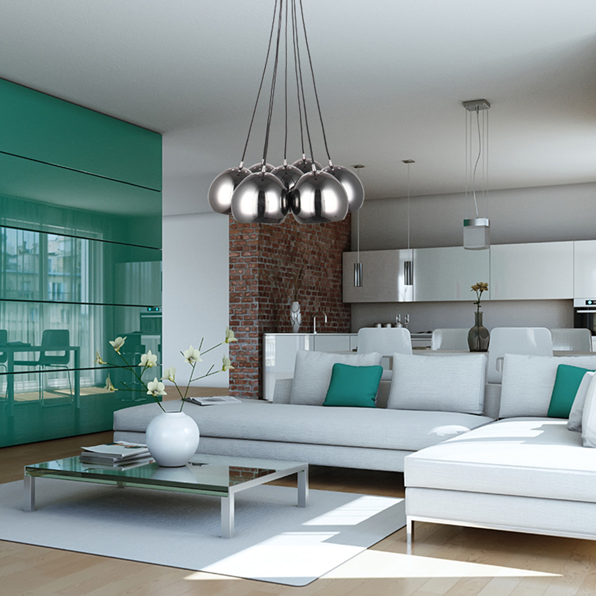 Lampa wisząca Punto 7 to wyjątkowy element oświetlenia, który z łatwością stanie się centralnym punktem każdego przestronnego wnętrza. Ta lampa wisząca z kloszami ze szkła o subtelnym, dymnym wykończeniu dodaje wnętrzom nowoczesnego charakteru i elegancji. Idealnie sprawdzi się jako lampa do salonu, gdzie wprowadzi przytulny, a zarazem stylowy nastrój, lub jako lampa do jadalni, tworząc wyjątkową atmosferę podczas rodzinnych spotkań przy stole. Dzięki swojej imponującej formie, lampa wisząca dymna z siedmioma kloszami rozświetla pomieszczenie delikatnym, rozproszonym światłem, które jednocześnie jest wystarczająco intensywne, by pełnić funkcję głównego oświetlenia. Jej elegancka, a jednocześnie nowoczesna konstrukcja doskonale wpisuje się w przestronne wnętrza, nadając im wyjątkowy charakter i podkreślając ich styl.