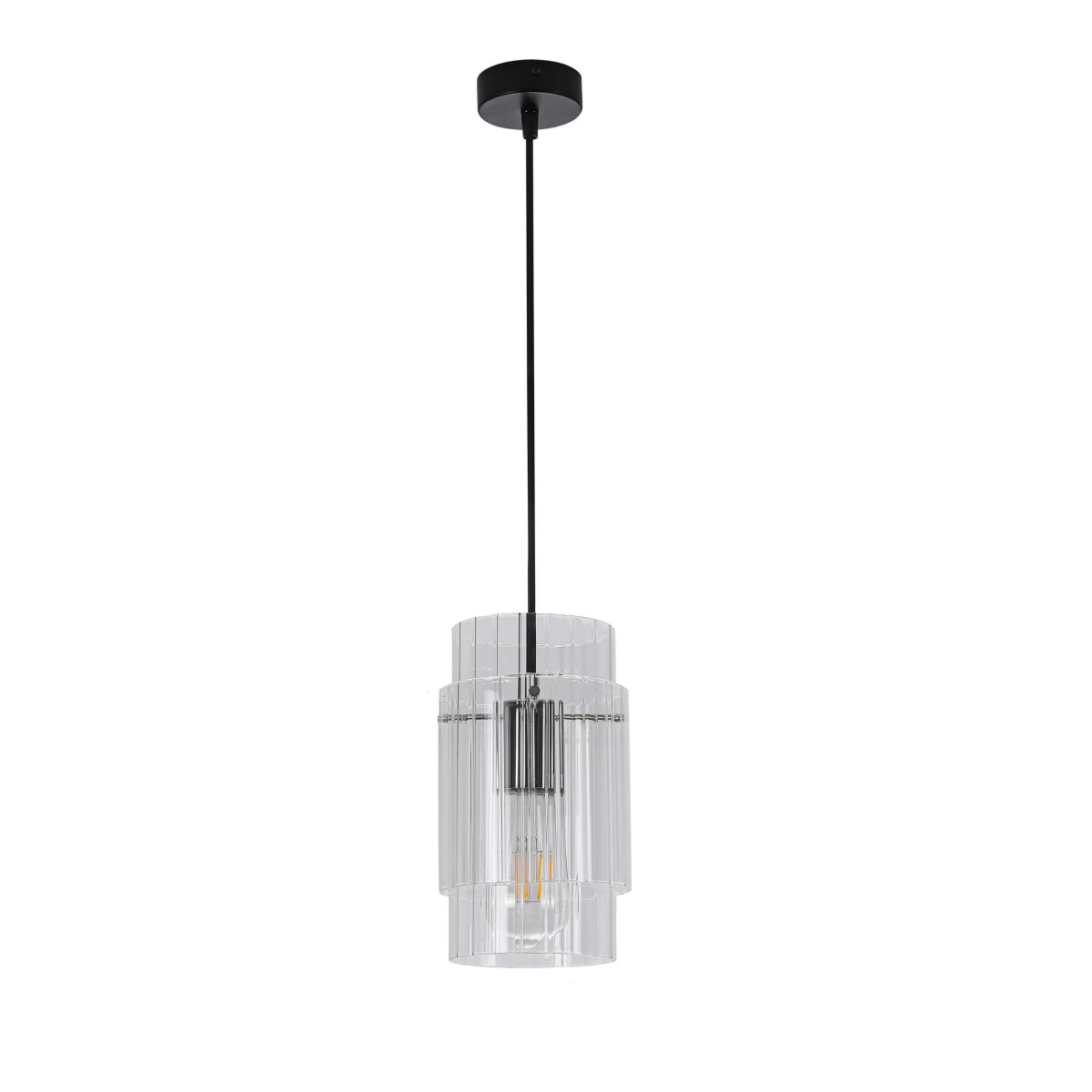 Materiał i kolorystyka: Klosz lampy jest wykonany z transparentnego szkła, podsufitka z czarnego metalu. Wewnątrz klosza znajduje się metalowy elemnt w kolorze srebra, który dodaj lampie elegancji.
