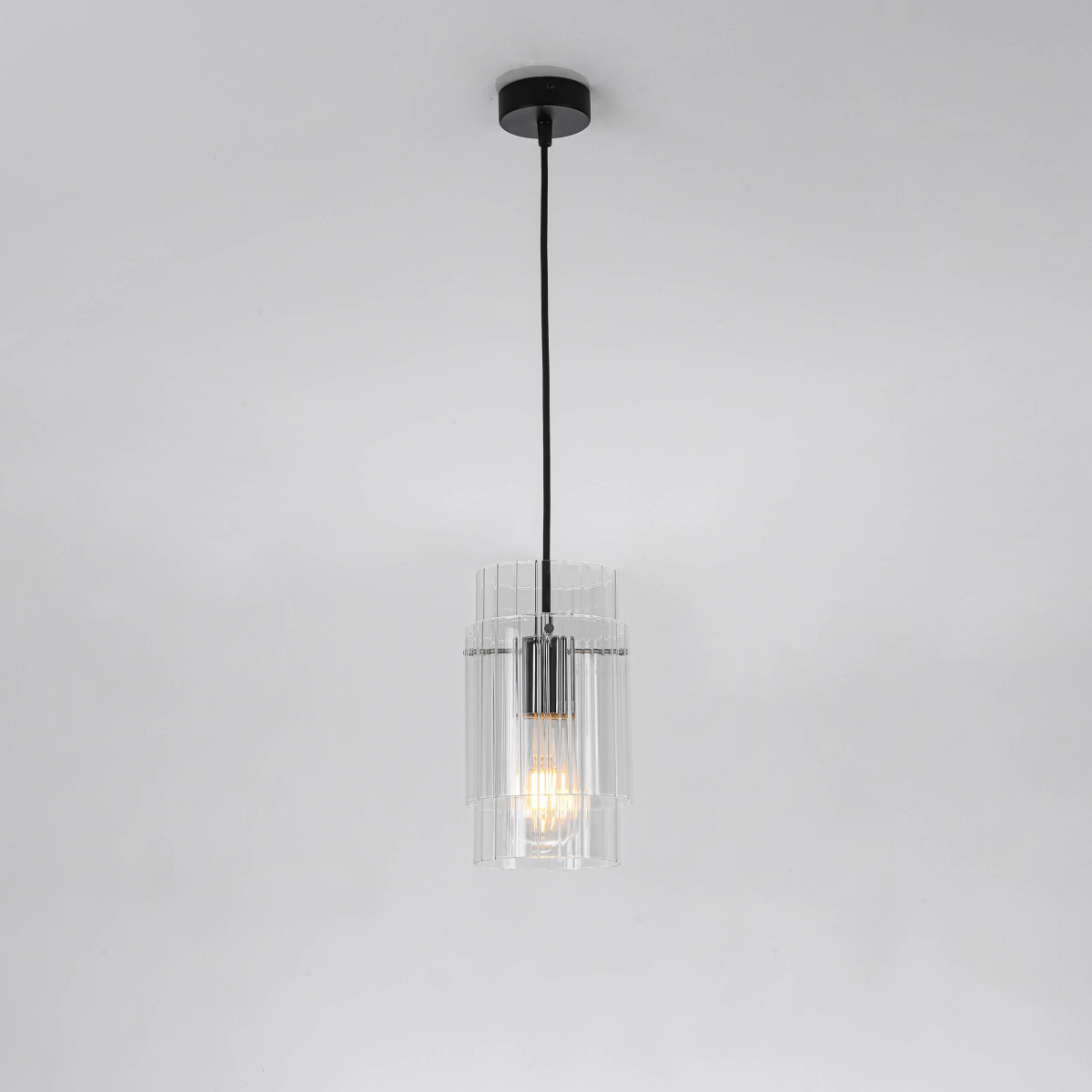Pojedyncza lampa wisząca Savona 1 to idealna propozycja do pomieszczeń takich jak salon czy jadalnia, gdzie może pełnić rolę głównego źródła światła. Jej nowoczesny design doskonale wpasuje się w różnorodne aranżacje wnętrz, dodając im elegancji i stylu. Lampa posiada wysokość równą 120 cm oraz średnicę klosza wynoszącą 14 cm, co czyni ją idealnym elementem dekoracyjnym nad stołem czy w centralnym punkcie pokoju. Klosz lampy wykonany jest z podwójnego, transparentnego szkła, które subtelnie rozprasza światło, tworząc przyjemną atmosferę. Podsufitka z czarnego metalu dodaje lampie nowoczesnego charakteru, a wewnętrzny metalowy element w kolorze srebra wprowadza elegancki akcent, podkreślając jej wyjątkowy wygląd.