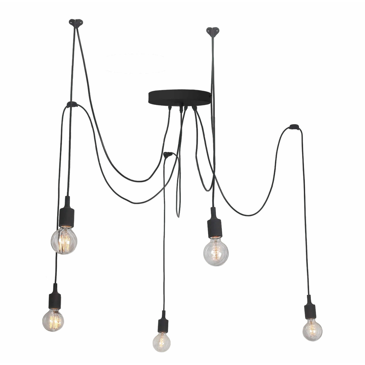 Soleto 5 wisząca - ta średnia, z czterech rozmiarów lamp Soleto, to minimalistyczna konstrukcja, która prostsza być nie może. Produkt ten to czarny stelaż przymocowany do sufitu, z którego rozpościerają się pięć, bardzo długich okablowań. Każde z nich zakończone jest wejściem na jedno źródło światła. Całokształt może bardzo przypominać ogromnego pająka :) Świetnie sprawdzi się jako oświetlenie w pokoju młodzieżowym, holu w nowoczesnym stylu a także kuchni, która jest dość chłodno urządzona. Można regulować wysokość każdego źródła światła, co gwarantuje praktyczność. Stylowość i oryginalność - jeśli tego Państwo szukają, to lampa Soleto Was z całą pewnością usatysfakcjonuje. Dzięki swej minimalistyce, wpasuje się niemal wszystkie aranżacje kolorystyczne Państwa mieszkania. W Naszym asortymencie posiadamy również większe wersje tego modelu. Serdecznie zapraszamy!