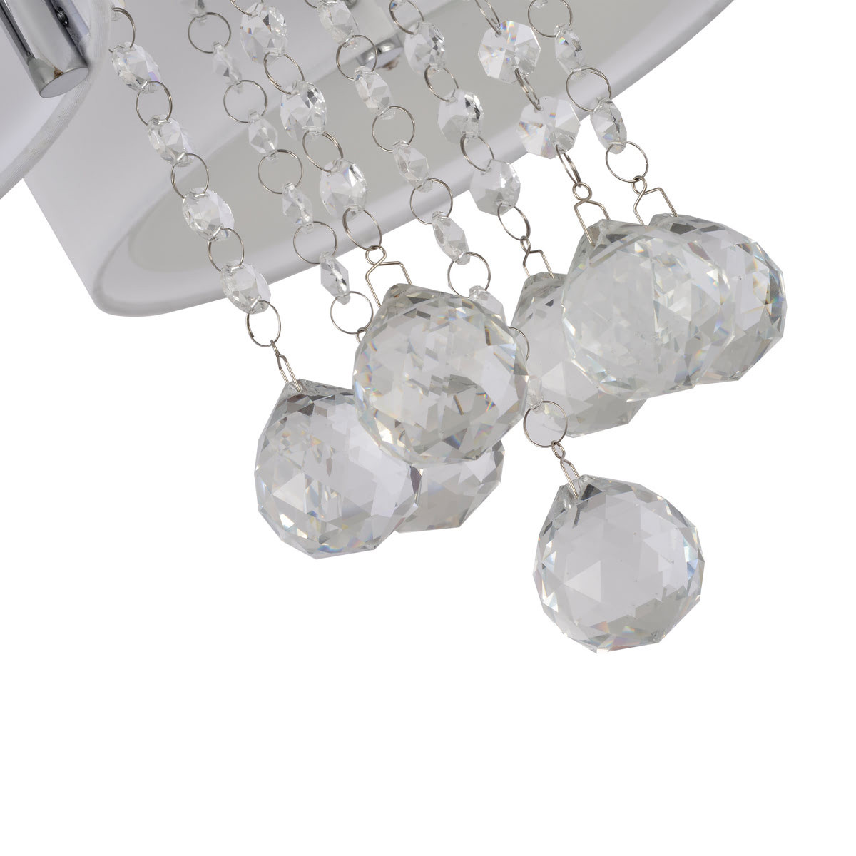 Materiały i jakość wykonania: Plafon został stworzony z wysokiej jakości materiałów, w tym kloszy z materiału i kryształów ze szkła, które pięknie rozpraszają światło.