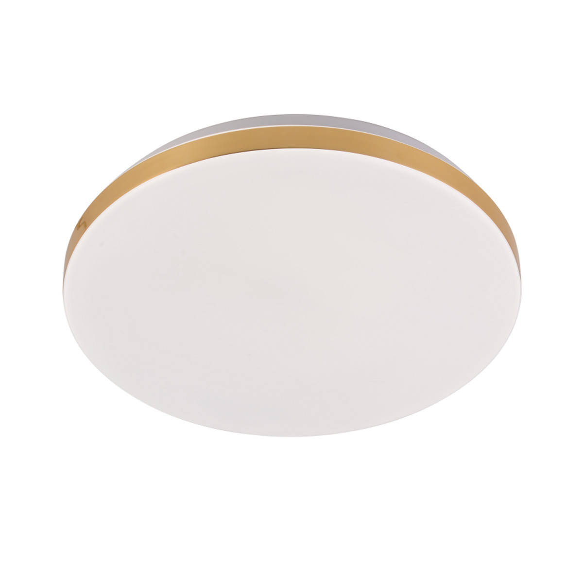 Okrągły plafon Babilon to elegancki element oświetlenia, wykonany z wysokiej jakości akrylu. Charakteryzuje się białym, mlecznym kloszem, który delikatnie rozprasza światło, tworząc przyjemną atmosferę w pomieszczeniu. Złota obwódka dodaje mu wyrazistości i stanowi interesujący akcent na tle białego sufitu. Połączenie bieli i złota nadaje plafonowi uniwersalny charakter, dzięki czemu doskonale komponuje się z różnorodnymi stylami wnętrz. Idealnie sprawdzi się zarówno w domowych przestrzeniach, jak i w miejscach komercyjnych. Plafon wyposażony jest w zintegrowane oświetlenie LED o neutralnej barwie światła 4000K, co zapewnia komfortowe warunki oświetleniowe.