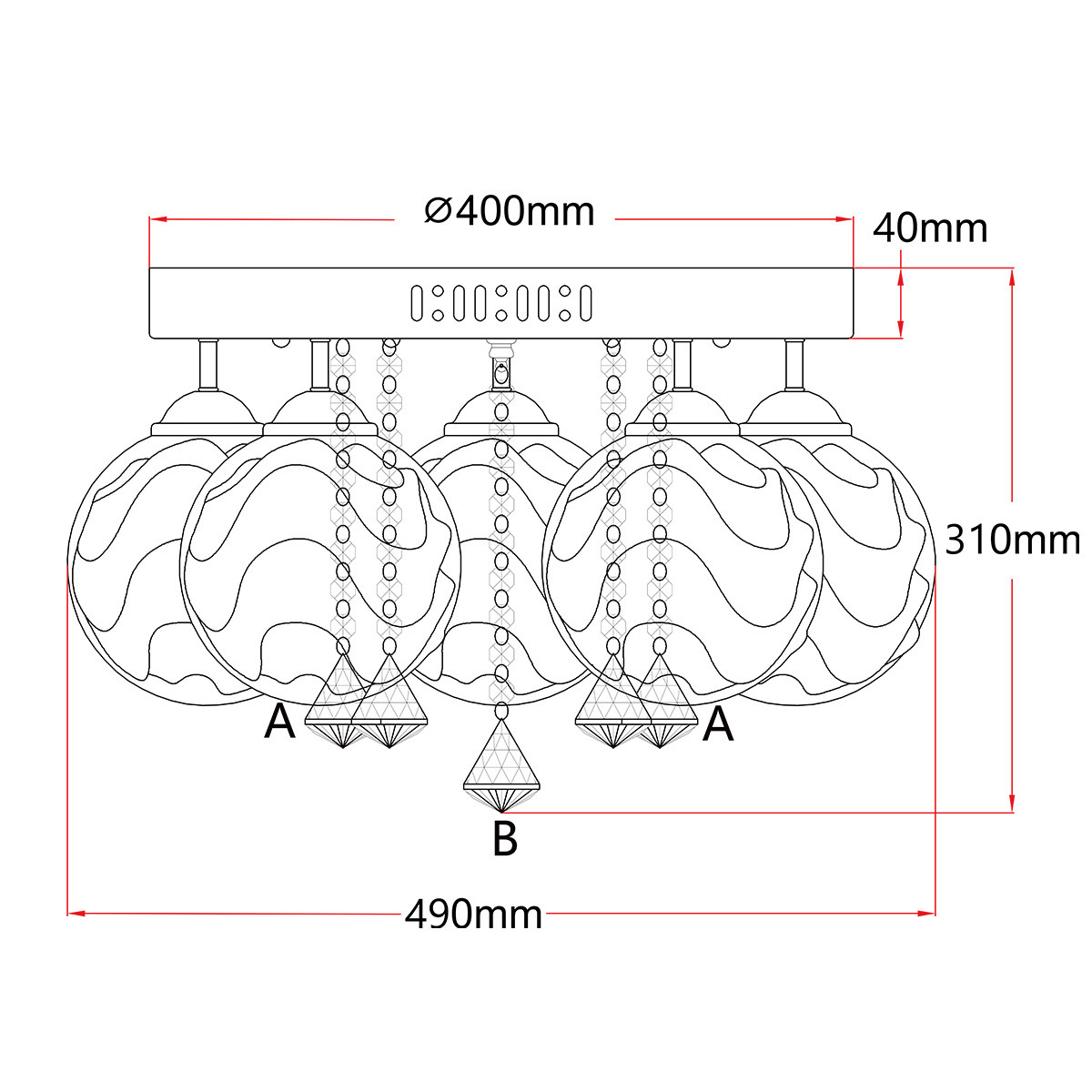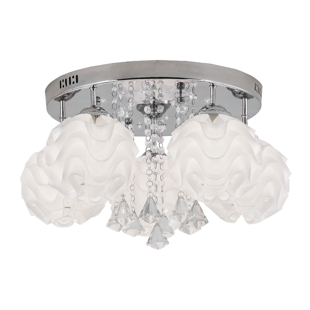 Rodzaj lampy: Plafon z kolekcji Sada z pięcioma kloszami i ozdobnymi kryształkami.
