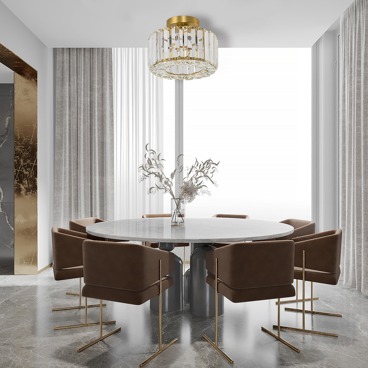 Plafon Vetro to świetne rozwiązanie do niewielkich przestrzeni, w których liczy się funkcjonalność i elegancja. Doskonale odnajdzie się w małych salonach, jadalniach czy sypialniach, nadając im wyjątkowego charakteru. Jego kompaktowy rozmiar jest idealny do pomieszczeń o niższych sufitach niż standardowe. Vetro nie tylko rozjaśnia wnętrze, ale też wprowadza elegancki akcent bez wizualnego obciążania wnętrza.