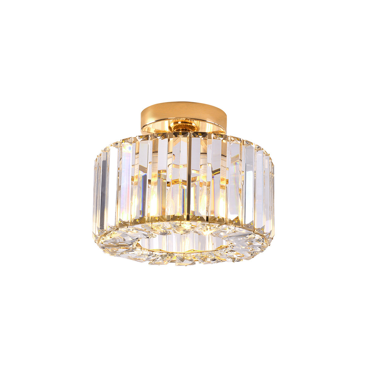 Materiał i kolorystyka: Lampa wykonana jest z metalu w kolorze złota oraz szklanych kryształków.
