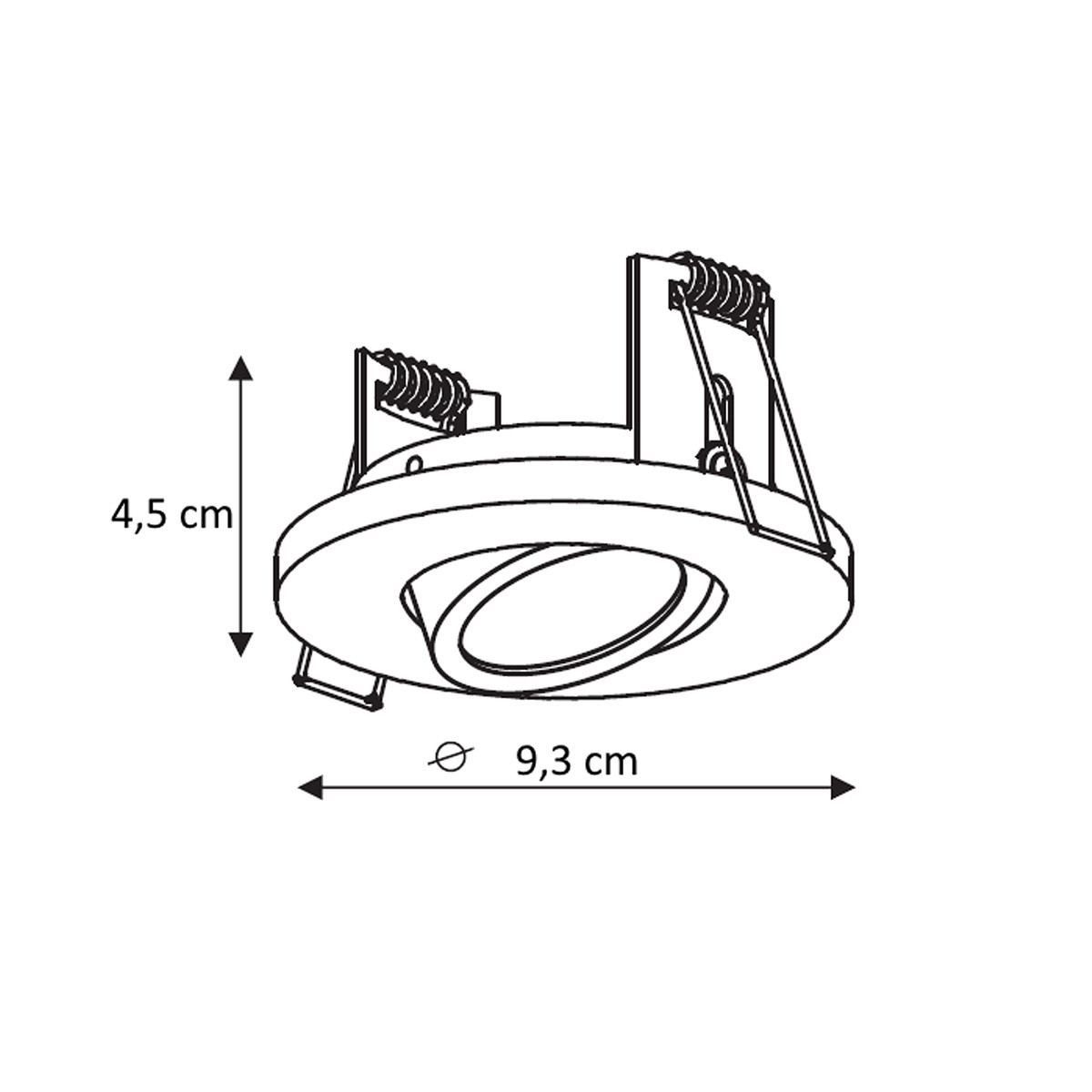 Wymiary: Oczko podtynkowe Lagos posiada średnicę równą 9,3 cm oraz wysokość 4,5 cm.