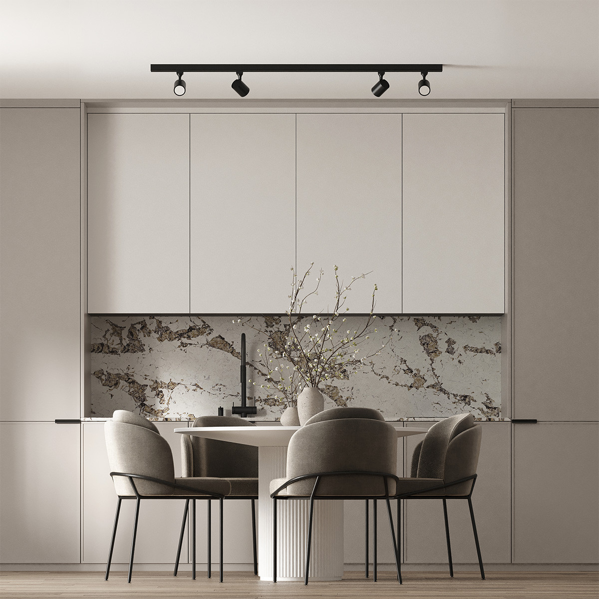 Te czarne reflektory na szynoprzewodzie, mogą być umieszczone w dowolnym miejscu, co daje ci możliwość ustawienia światła zgodnie z twoimi potrzebami aranżacyjnymi. Ponadto, każdy z reflektorów można obracać. Z pewnością pomoże ci to podczas czytania ulubionej książki, malowania obrazu, oglądania filmu, układania puzzli czy każdej innej aktywności.