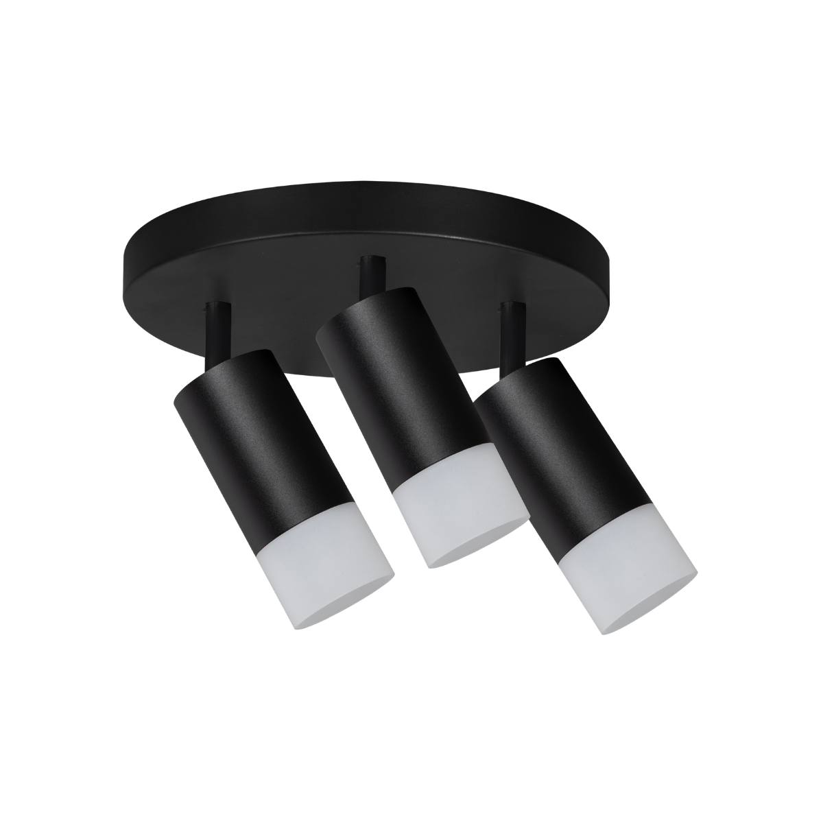 Plafon Sonaya czarny to połączenie prostoty i nowoczesności. Trzy regulowane reflektory pozwalają skierować światło w wybrane miejsca, zapewniając praktyczne i stylowe oświetlenie. Matowa czerń korpusu i mleczne akrylowe klosze tworzą wyrafinowany kontrast, który doskonale sprawdzi się w salonie, kuchni, korytarzu czy sypialni.