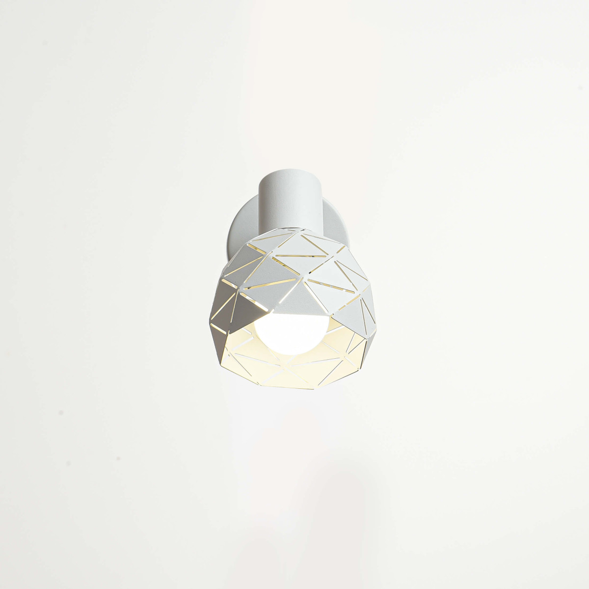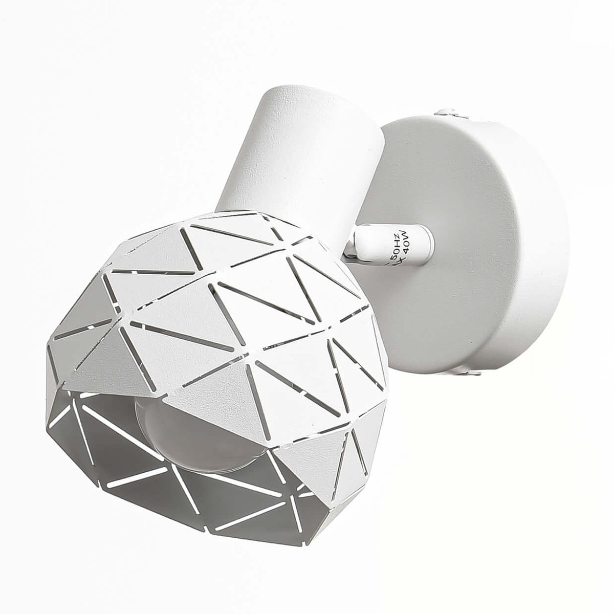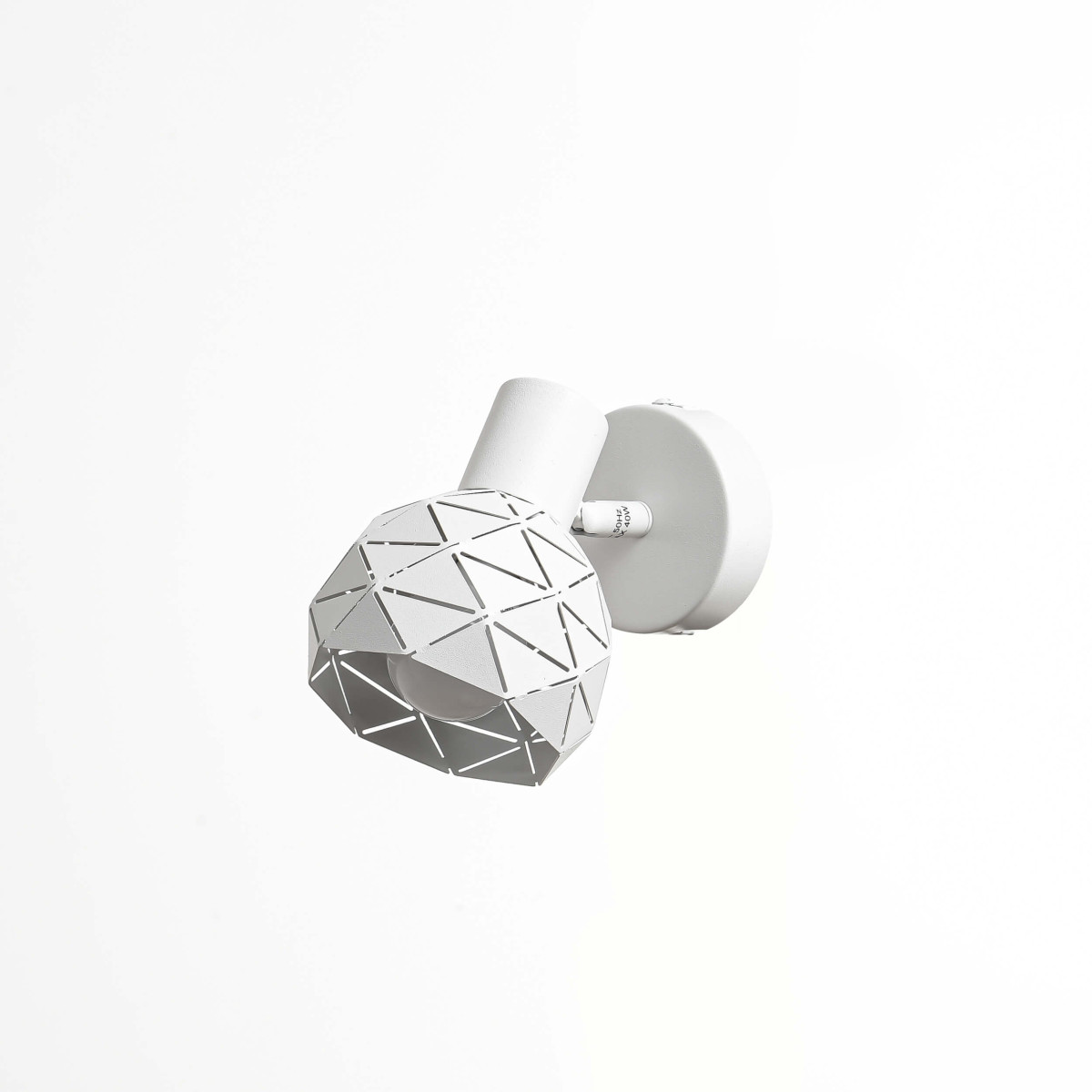 Biały spot z kolekcji Reus został wykonany z metalu. Ten metalowy spot posiada ozdobny wzór przywodzący na myśl styl glamour. Klosz lampy posiada delikatne wycięcia, które w przyjemny sposób rozpraszają światło. Powierzchnia klosza została wykończona w eleganckim macie. Kształ i wykończenie spotu sprawiają, że będzie on doskonałym wyborem do pomieszczeń urządzanych zarówno w stylu glamour, jak i klasycznym. Spot jest doskonałym uzupełnieniem innych lamp z kolekcji Reus. Dając intymne, boczne światło, będzie stanowił idealny duet z lampą wiszącą. Dzięki ruchomemu reflektorowi będzie idealnym wyborem do sypialni obok łóżka, do łazienki lub korytarza nad lustro.