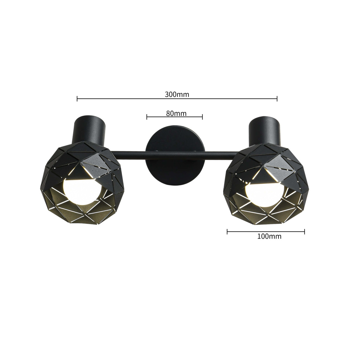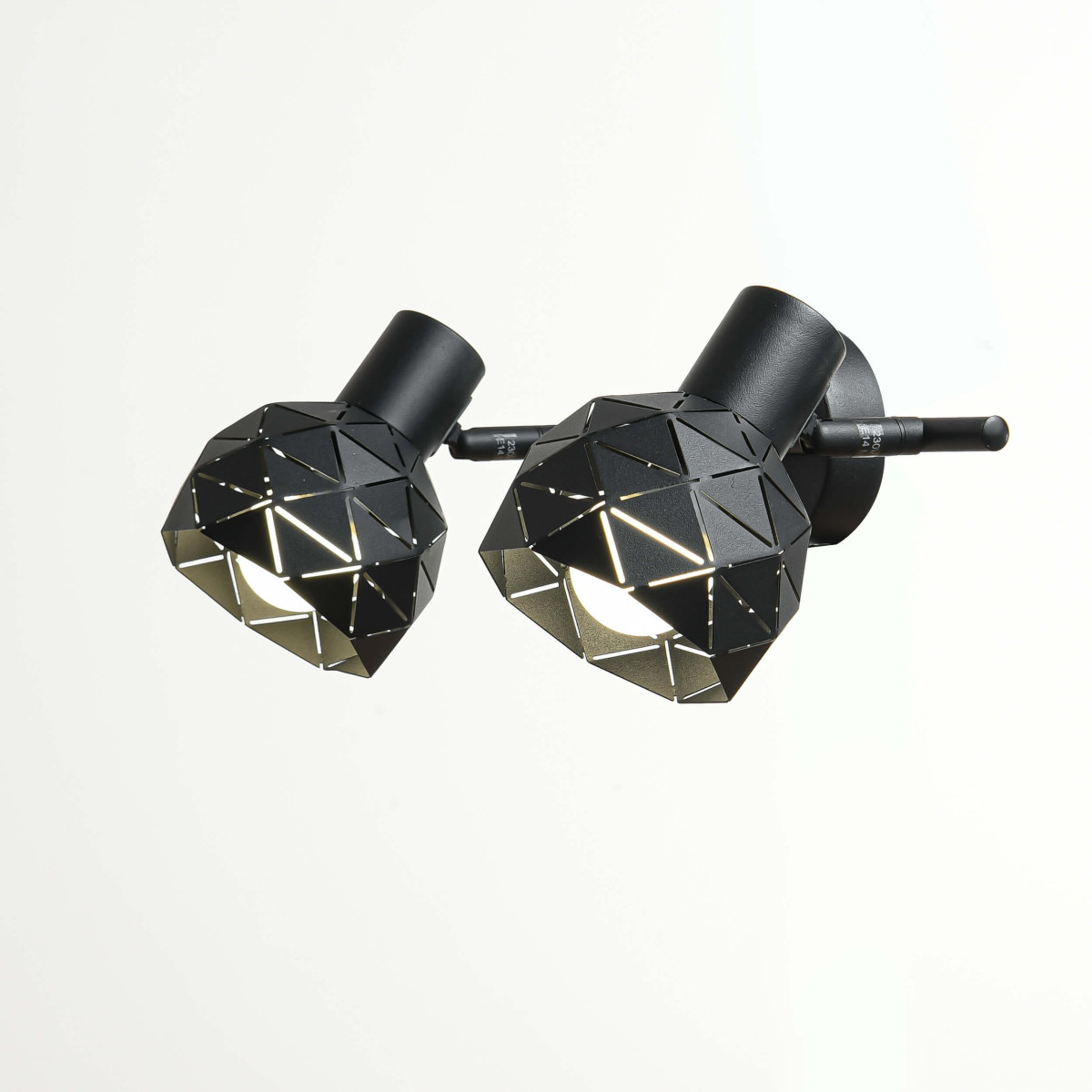 Czarny spot z kolekcji Reus został wykonany z metalu. Ten metalowy spot posiada ozdobny wzór przywodzący na myśl styl glamour. Klosze lampy posiadają delikatne wycięcia, które w przyjemny sposób rozpraszają światło. Powierzchnia kloszów została wykończona w eleganckim macie. Kształ i wykończenie spotu sprawiają, że będzie on doskonałym wyborem do pomieszczeń urządzanych zarówno w stylu glamour, jak i klasycznym. Spot jest doskonałym uzupełnieniem innych lamp z kolekcji Reus. Dając intymne, boczne światło, będzie stanowił idealny duet z lampą wiszącą. Dzięki ruchomym reflektorom będzie idealnym wyborem do sypialni obok łóżka, do łazienki lub korytarza nad lustro.