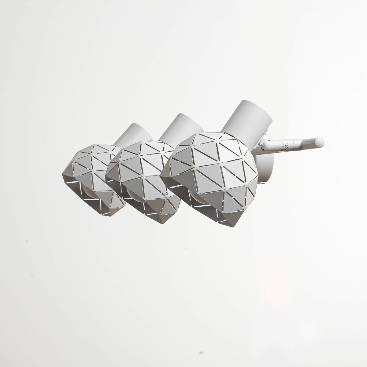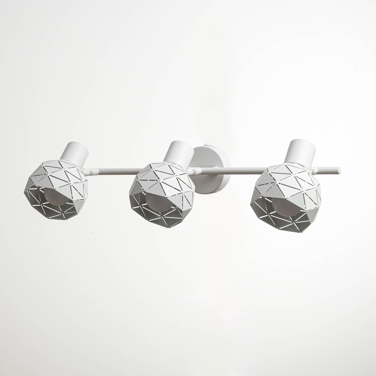 Biały spot z kolekcji Reus został wykonany z metalu. Ten metalowy spot posiada ozdobny wzór przywodzący na myśl styl glamour. Klosze lampy posiadają delikatne wycięcia, które w przyjemny sposób rozpraszają światło. Powierzchnia kloszów została wykończona w eleganckim macie. Kształ i wykończenie spotu sprawiają, że będzie on doskonałym wyborem do pomieszczeń urządzanych zarówno w stylu glamour, jak i klasycznym. Spot jest doskonałym uzupełnieniem innych lamp z kolekcji Reus. Dając intymne, boczne światło, będzie stanowił idealny duet z lampą wiszącą. Dzięki ruchomym reflektorom będzie idealnym wyborem do sypialni obok łóżka, do łazienki lub korytarza nad lustro.