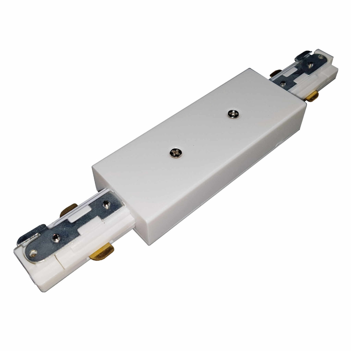 Zasilanie centralne w białym kolorze do oświetlenia szynowego. Ten niewielki element, który w większości wykonany jest z akrylu, odpowiada za połączenie szynoprzewodu z instalacją elektryczną.